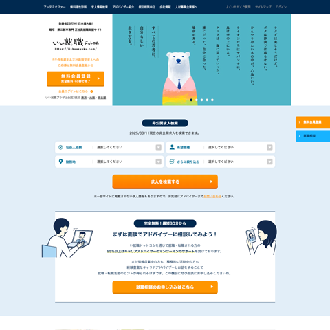 日本最大級の20代若手向けの就職・転職支援サービス。これまでに26万人を超える転職者の利用実績あり